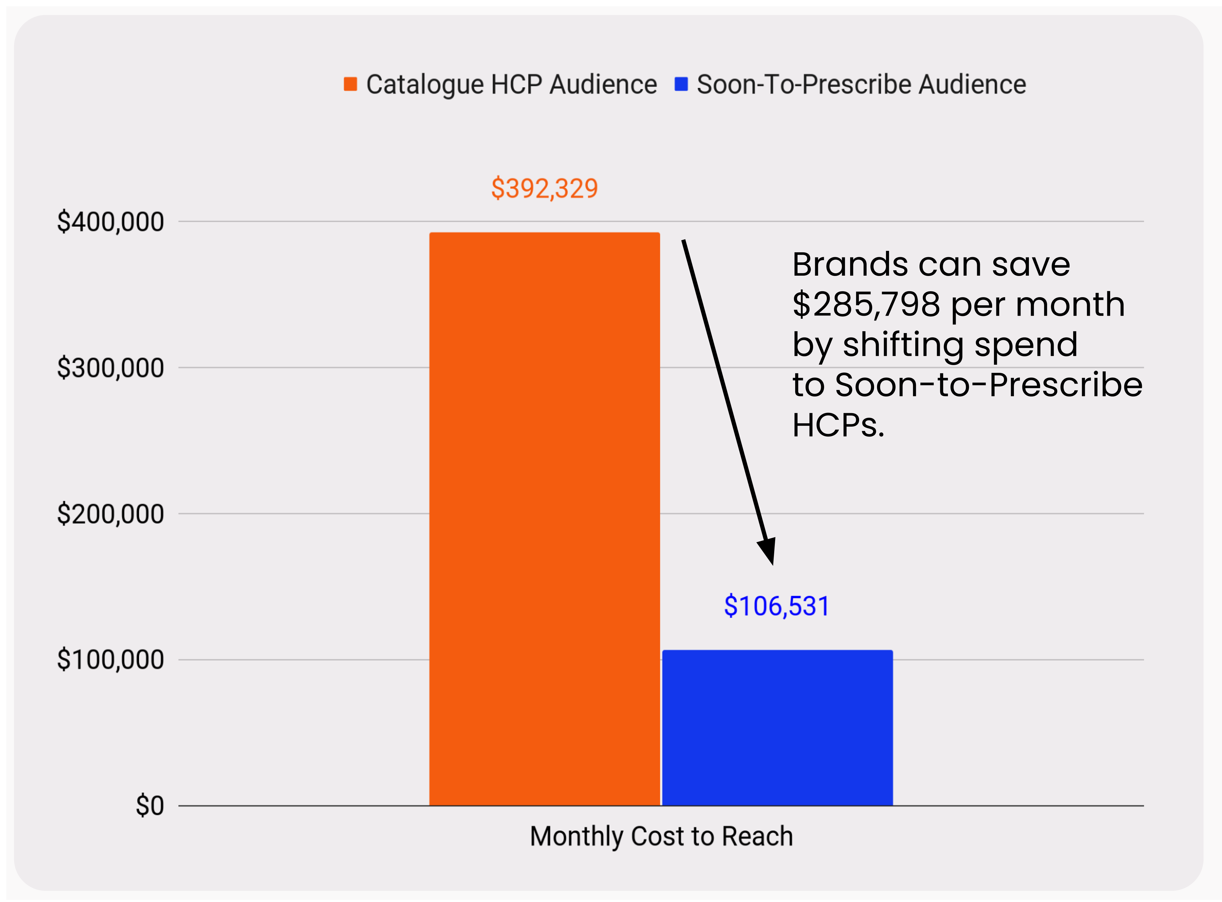 In doing so, we reduced that pool to ~118,000 HCPs actively treating patients likely to initiate therapy in the near term. In this case, that meant avoiding approximately $285,798 in monthly spend directed at physicians who were not in-market..