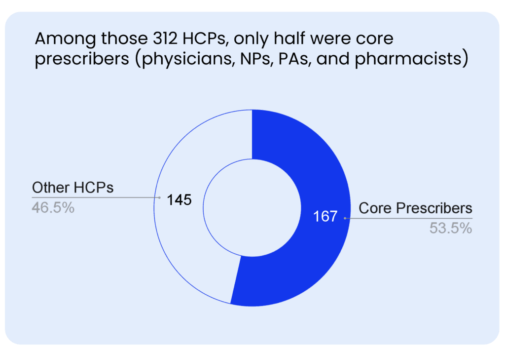 In our GLP-1 example, a two-year prescriber lookback yields ~435,000 HCPs. That audience includes many physicians who simply do not have a patient need right now.