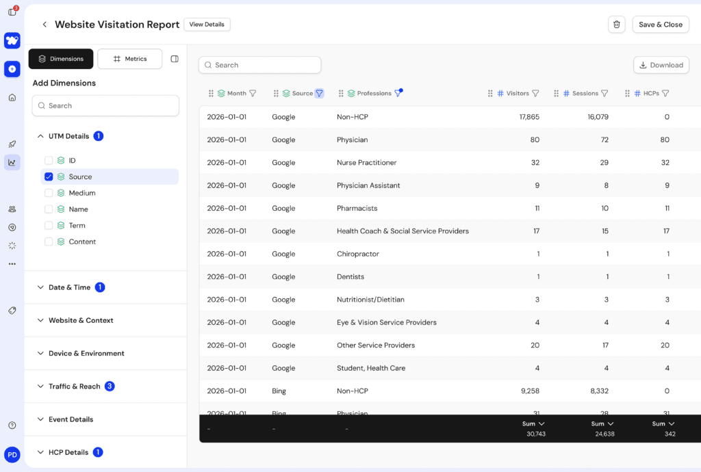 - Powering targeting and measurement from the same source of truth. In pharma, claims data is outcomes data. By building audiences and measuring performance directly against real-world prescribing activity, campaigns are optimized to the business results that matter.