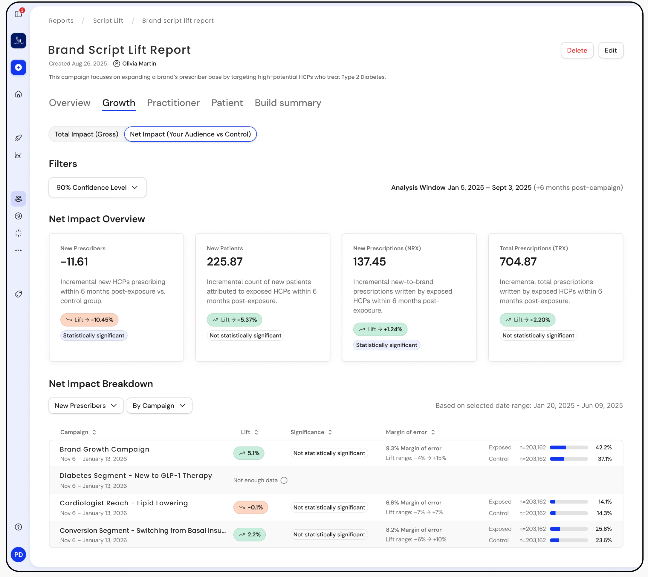 Did the campaign change prescribing behavior? Wrango’s Script Lift report compares exposed physicians against a matched peer group to show the real difference the campaign made.