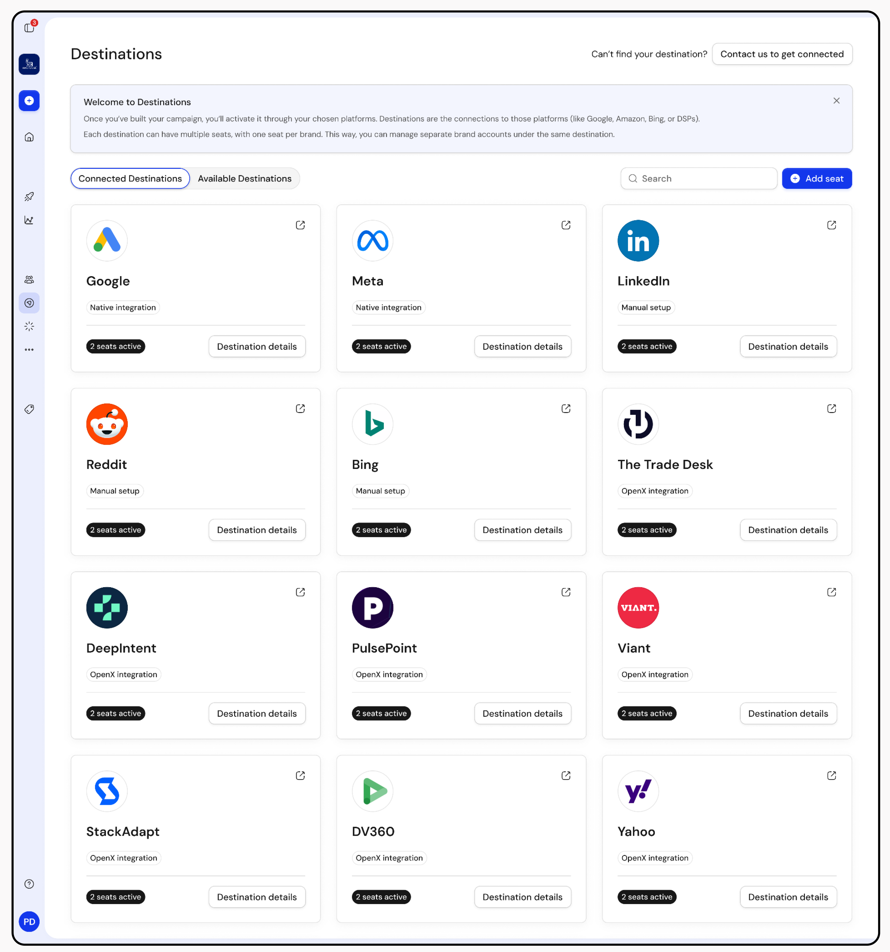 Media buyers can create a segment once and activate it across a wide range of advertising platforms, including programmatic, social, and search environments. Our segments are already live in Google Ads, Meta, Linkedin, Bing, Reddit, and over 25 programmatic DSPs including The Trade Desk.